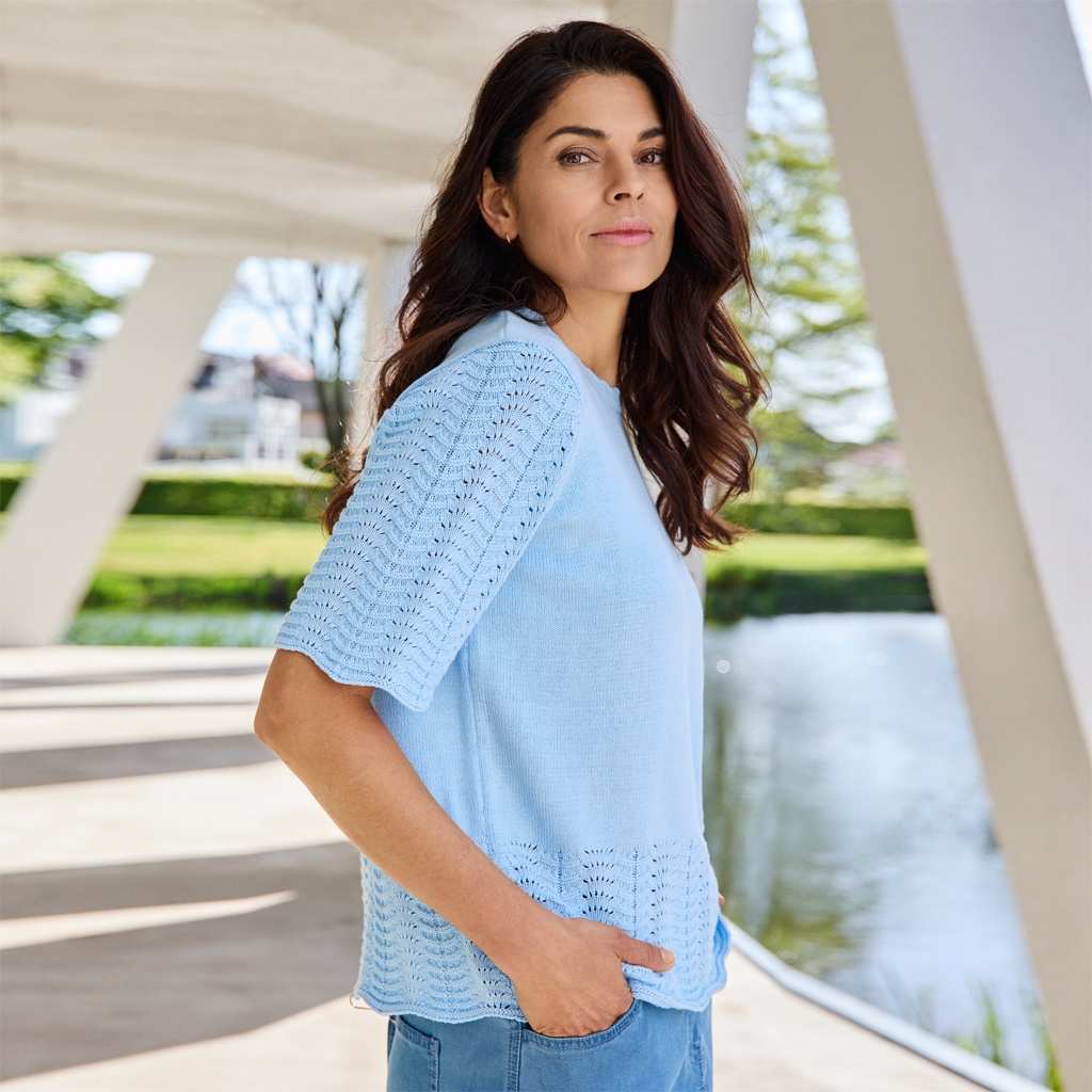 StartsidanKategorier: Tillverkare | Snygg marin damtröjaDenna eleganta damtröja kombinerar en klassisk design med moderna detaljer och är ett stilrent tillskott till varje garderob. Tröjan har en djup marinblå färg som ger ett sofistikerat och tidlöst uttryck, vilket gör den enkel att matcha med både ljusa och mörka plagg. Den släta stickade ytan ger ett rent och minimalistiskt intryck, samtidigt som materialet ser mjukt och behagligt ut att bära under hela dagen.Nederdelen av tröjan pryds av dekorativa horisontella ränder i vitt och marinblått, vilket skapar en snygg kontrast mot den enfärgade överdelen. Samma randdetalj återkommer på ärmsluten och ger designen en harmonisk och genomtänkt känsla. Den rundade halsringningen är diskret och klassisk, vilket gör att tröjan passar lika bra till vardag som till mer uppklädda tillfällen. Den figurnära men samtidigt bekväma passformen framhäver siluetten utan att kännas tight, vilket gör tröjan både smickrande och lätt att bära. De långa ärmarna ger extra värme under kyligare dagar och gör den perfekt för höst, vinter och tidig vår. Denna damtröja passar utmärkt tillsammans med jeans för en avslappnad stil, men kan även kombineras med kjol eller kostymbyxor för en mer elegant look. Det är ett mångsidigt plagg som enkelt blir en favorit i garderoben. ![]() Hos Joolin.se kan man bland annat läsa "Rundhalströja med lång ärm som stickats i viscose med polyester hos danska Sunday. Tröjan har vita ränder på ärmarna och nertill och mäter cirkca 60 cm i storlek M. Övriga mått finner du i plaggmått-tabellen. Vid...". Läs mer på länken https://www.joolin.se/75259![]() 🔴 Livet är för kort för tråkiga kläder! 🤍Möt sommaren med energi och stil i den här fantastiska randiga tröjan från Micha! Det klassiska röd-och-vita randmönstret utstrålar en lekfull och livfull... Läs mer här![]() 🌸 Sommarens vackraste tröja har anlänt!Dröm dig bort i denna himmelsblå stickade tröja – säsongens absoluta favorit! 💙 Med sitt mjuka pastellblå material och de vackra hålstickade detaljerna på... Läs mer härLänkar för damkläder: |